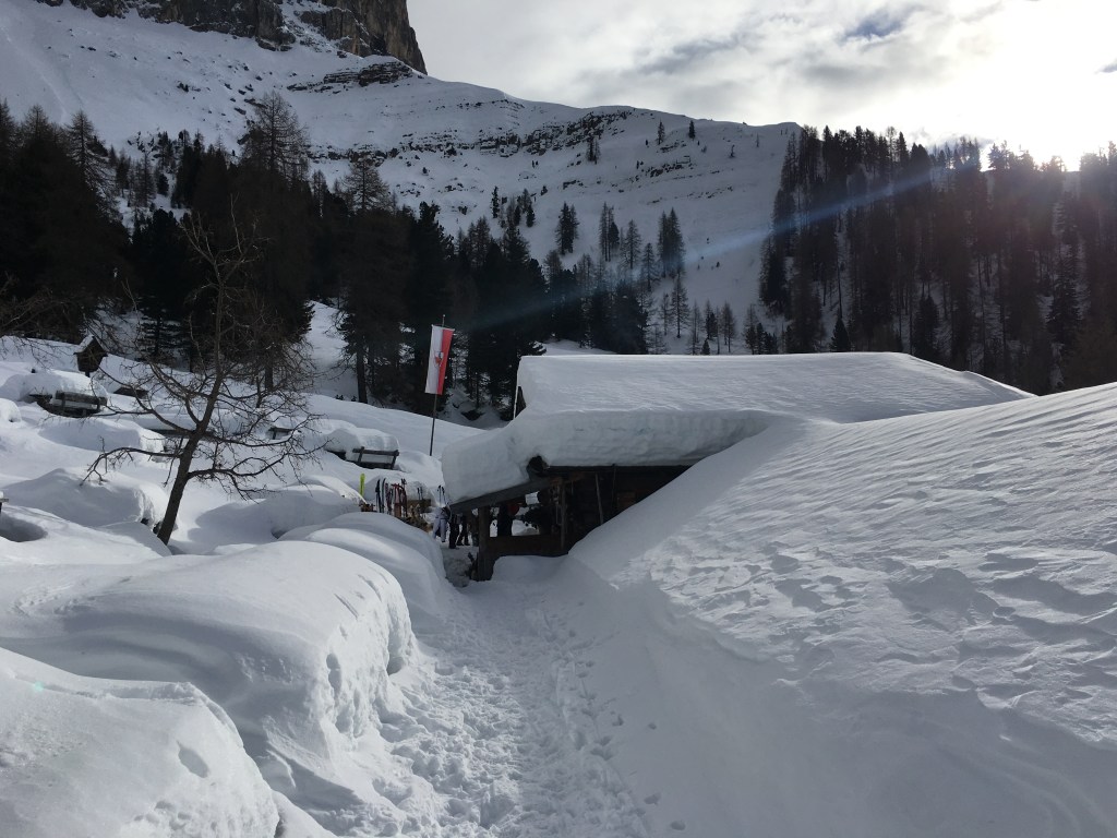 Valicati questi ponti, manca poco ad arrivare alla meta, la malga fortunatamente è aperta anche d’inverno così abbiamo potuto prendere una buona bevanda calda! Non abbiamo mangiato nulla perché contavamo di ritornare per le 15 e approfittare della merenda meravigliosa del Cyprianerhof! Eh sì, perché come la maggior parte degli hotel in Alto Adige, anche questo offre una pensione a 3\4: colazione, cena e spuntino pomeridiano. Alla fine però si mangia sempre più del dovuto! Dopotutto però siamo in vacanza…e darsi dei freni proprio quando si fa una vacanza a 5 stelle non mi sembra corretto!